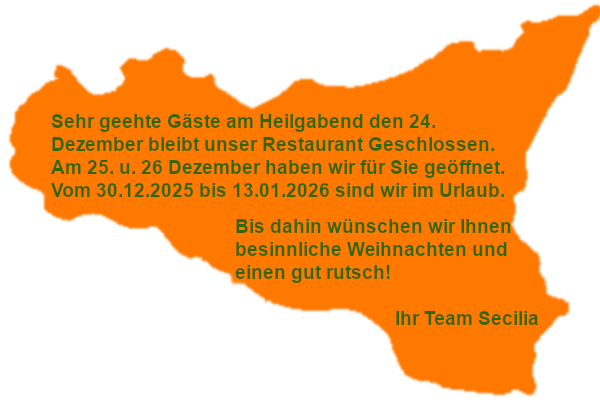 Das Ristorante Sicilia wird bereits seit 1983 von Familie Antona geführt und erfreut sich heute einer Anzahlreichen Stammkundschaft. Ganz besonders freuen wir uns über unsere neuen Gäste! Wir bieten in unseren Räumen die Möglichkeit Familienfeiern und Betriebsfeiern in einem schönen Ambiente durchzuführen. Fragen Sie uns bitte, wir versuchen Ihre persönlichen Wünsche zu realisieren. Die Familie Antona stammt aus Licata/Palermo im Süden Siziliens Bilder von Licata Hier finden Sie auch „Aktuelles“ der Stadt Reinheim! Licata liegt 47 Kilometer südöstlich von Agrigent an der Küste. Hier wohnen 39.051 Einwohner, die hauptsächlich in der Landwirtschaft und in der Industrie arbeiten. Vom Hafen Licatas aus, einem wichtigen Exporthafen Siziliens, gibt es eine Schiffsverbindung nach Valletta auf Malta. Partnerstädte der Stad Reinheim: Licata (Italien-Sizilien) Cestas (Frankreich) Sanok (Polen) Fürstenwalde (Deutschland)